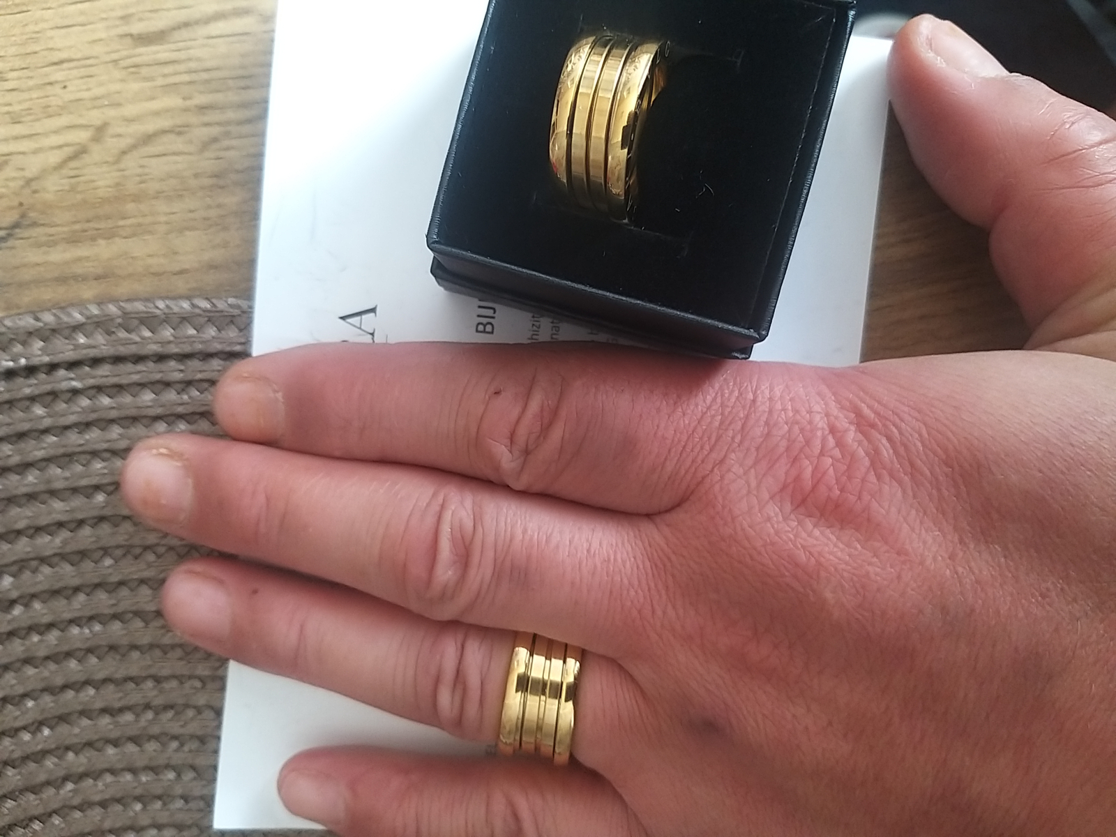 Asortare: Inelul Masiv Bulga GOLD poate fi purtat alături de o cămașă albă structurată pentru un look business chic sau cu o rochie de seară pentru un efect glamour.