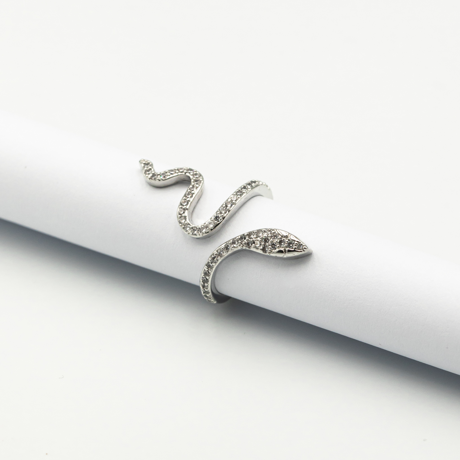 Inel Placat Cu Aur Alb Snake Glow – Formă Serpentină + Strălucire Delicată + Eleganță Modernă – realizat din aliaj metalic de înaltă calitate, placat cu aur alb de 14K și decorat cu cristale zirconia.