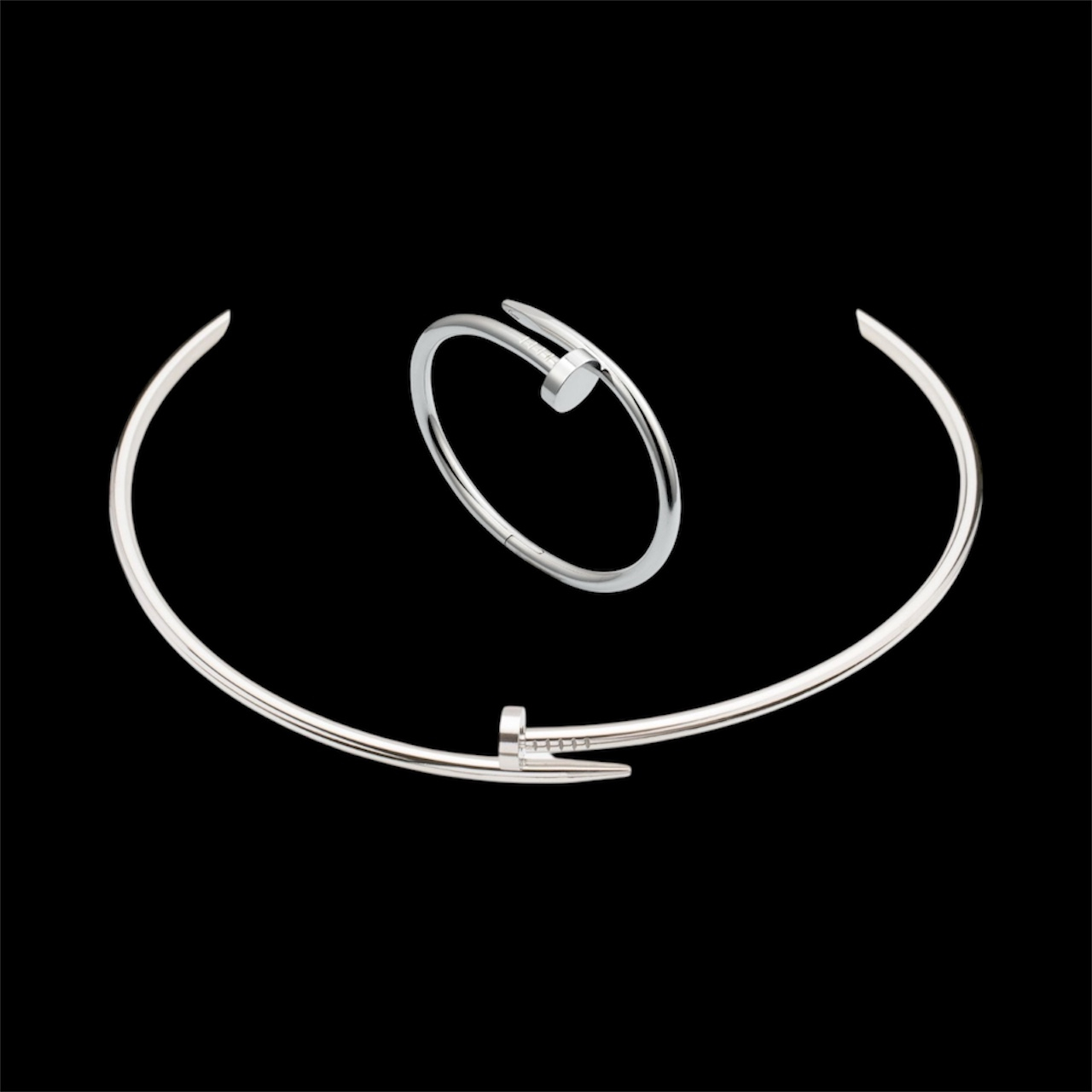 Set Bijuterii Model Cui Silver - oțel inoxidabil de înaltă calitate placat cu aur alb.