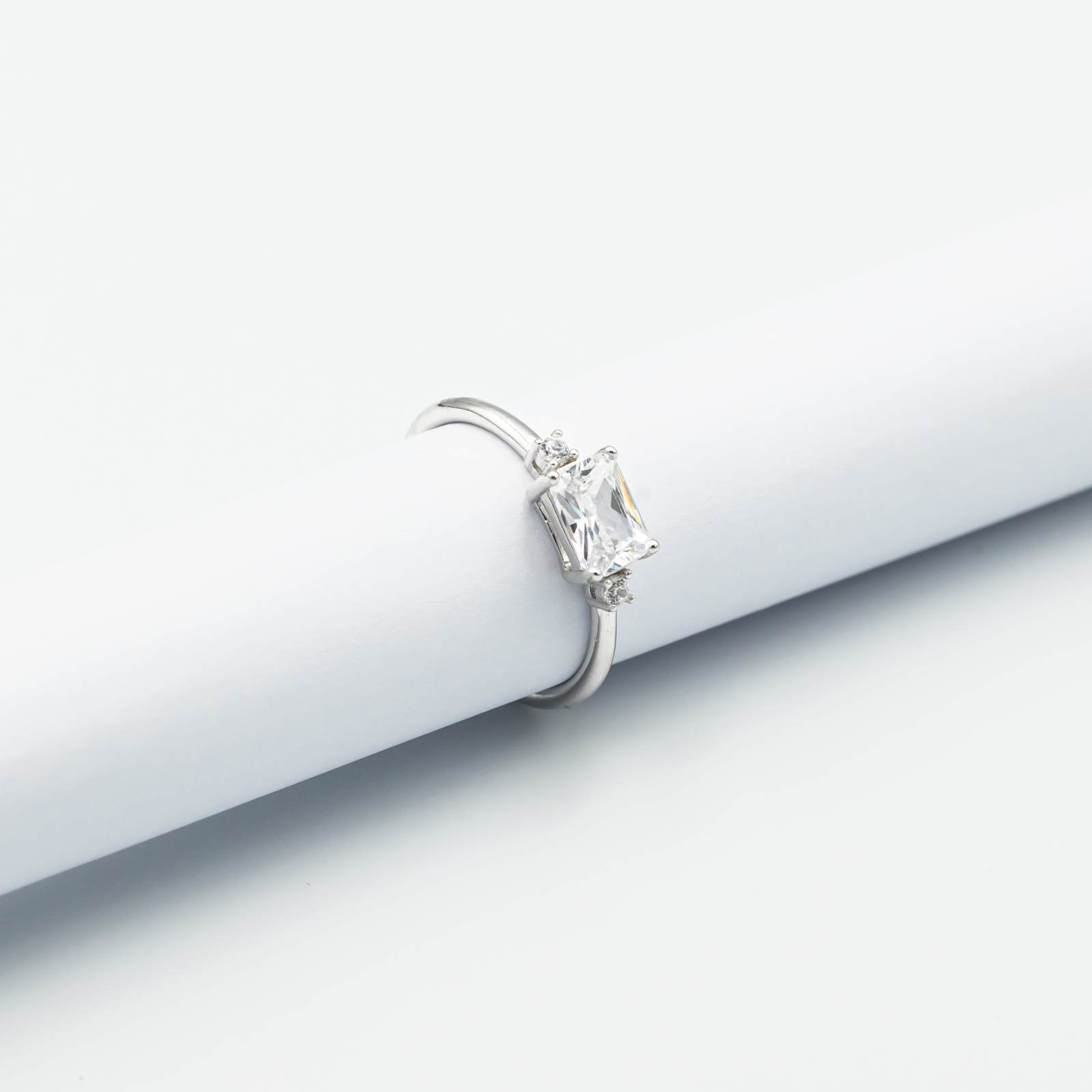 Inel Solitaire Francesca – Simplitate Elegantă + Strălucire Pură + Design Clasic – realizat din argint placat cu rodiu și decorat cu o piatră centrală zirconia.